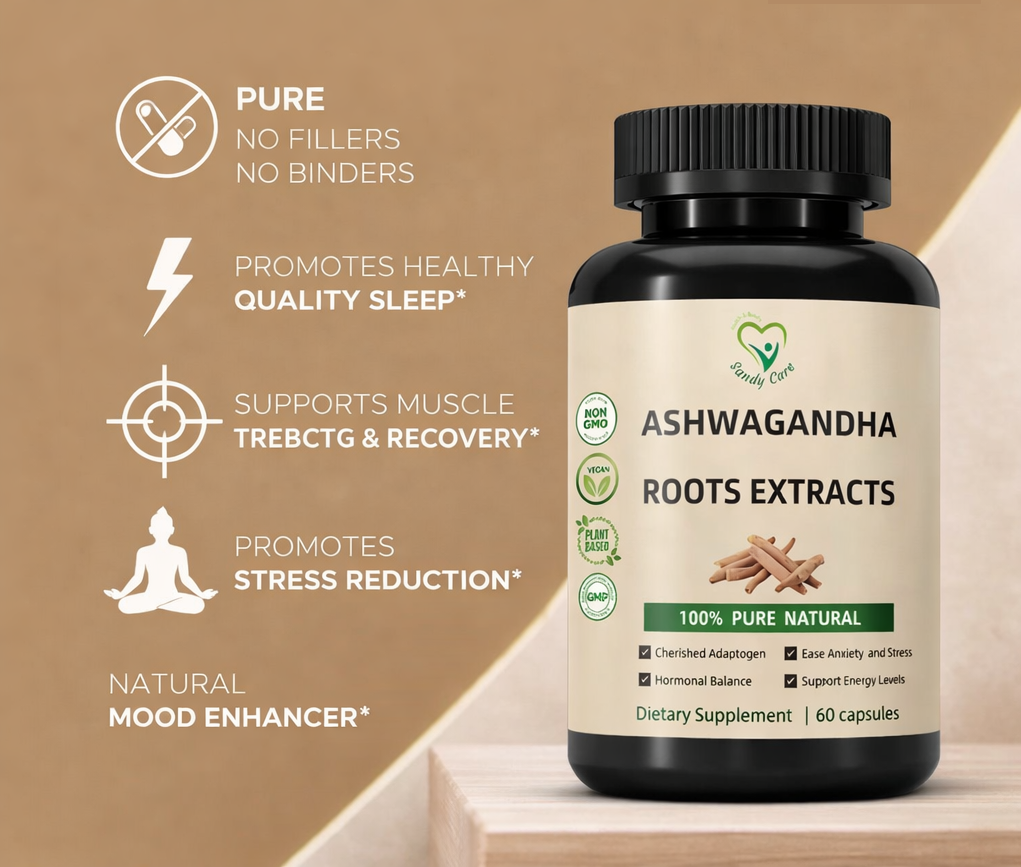 SandyCare Ashwagandha Root Extract Capsules: Pure Adaptogen for Stress Relief and Energy